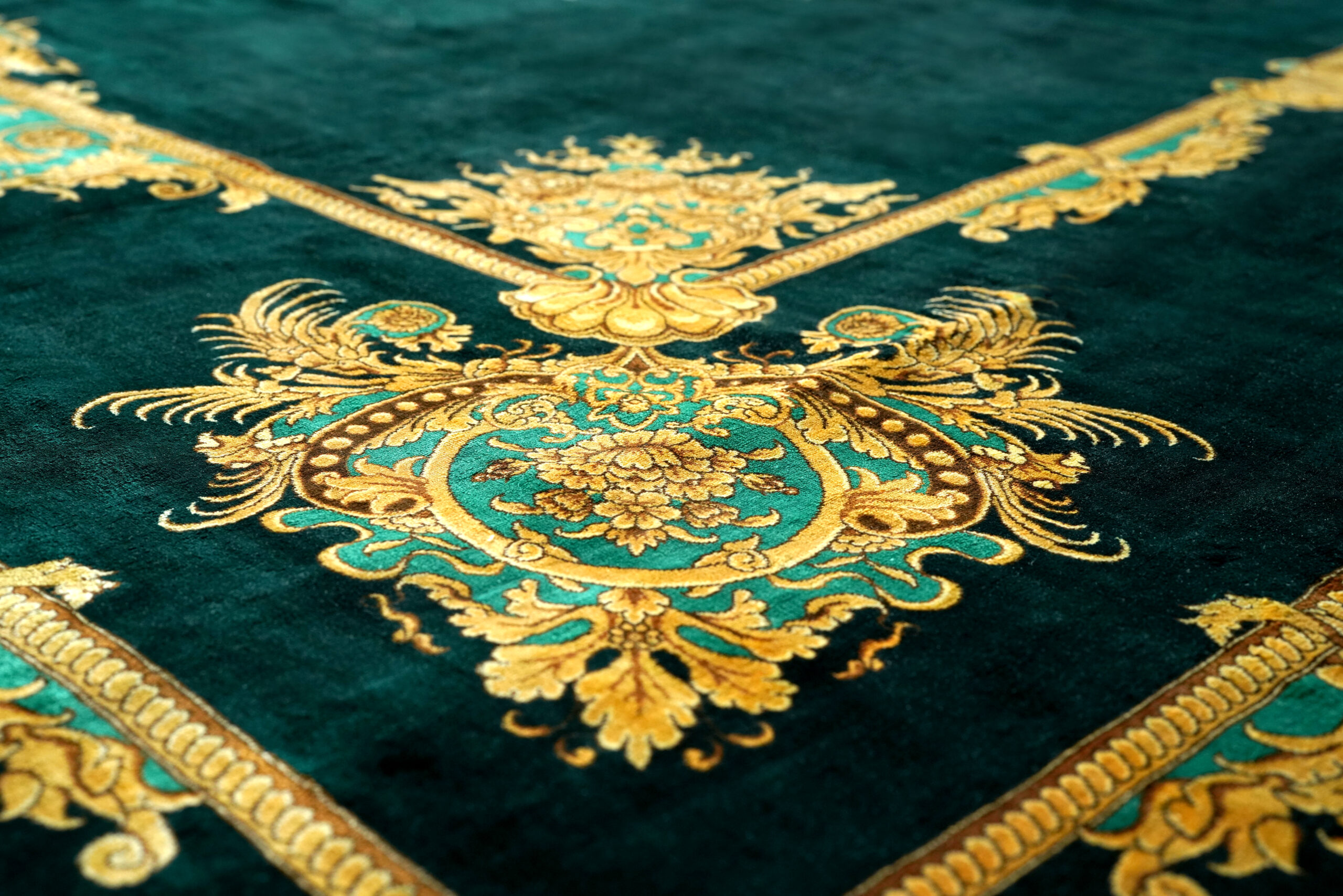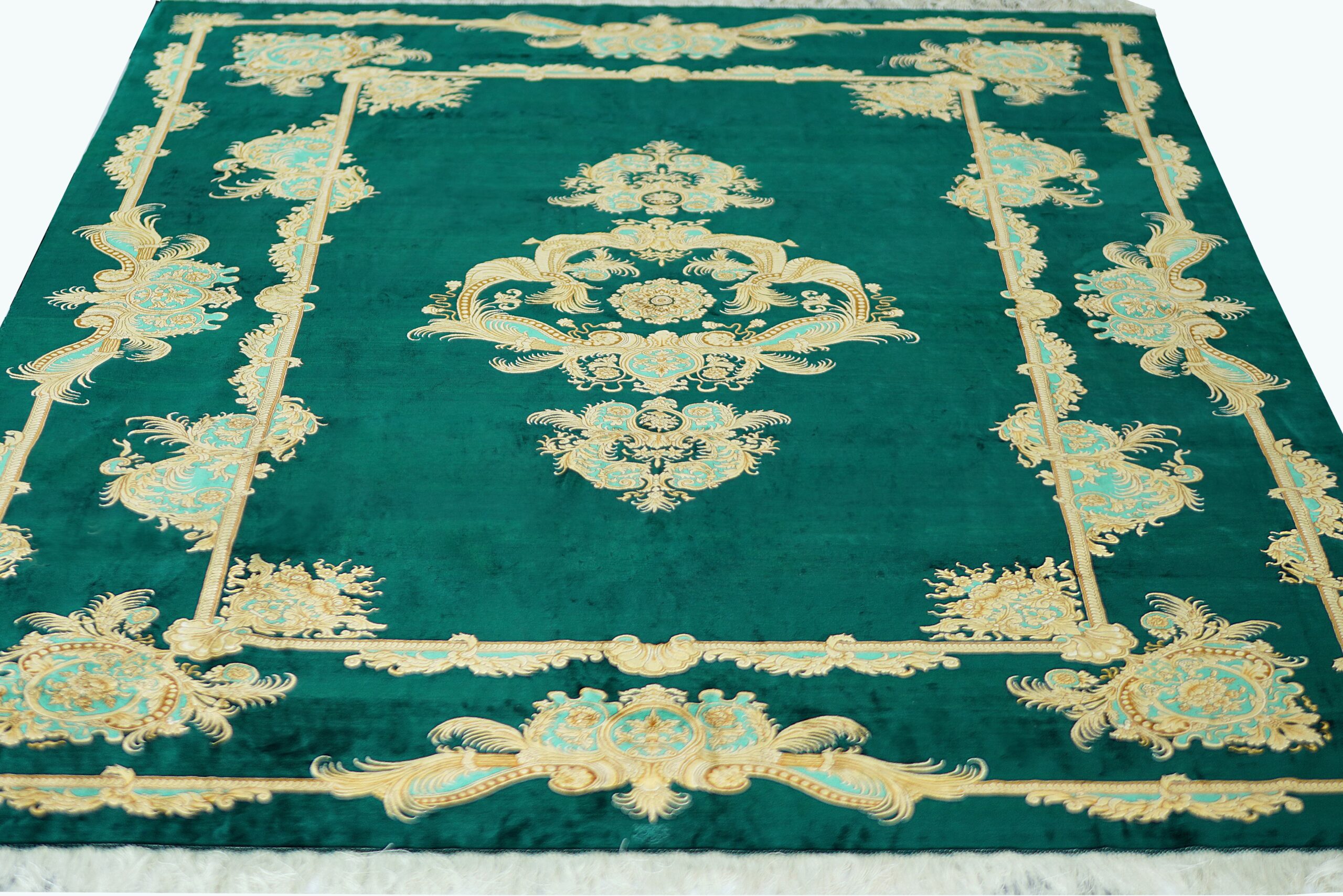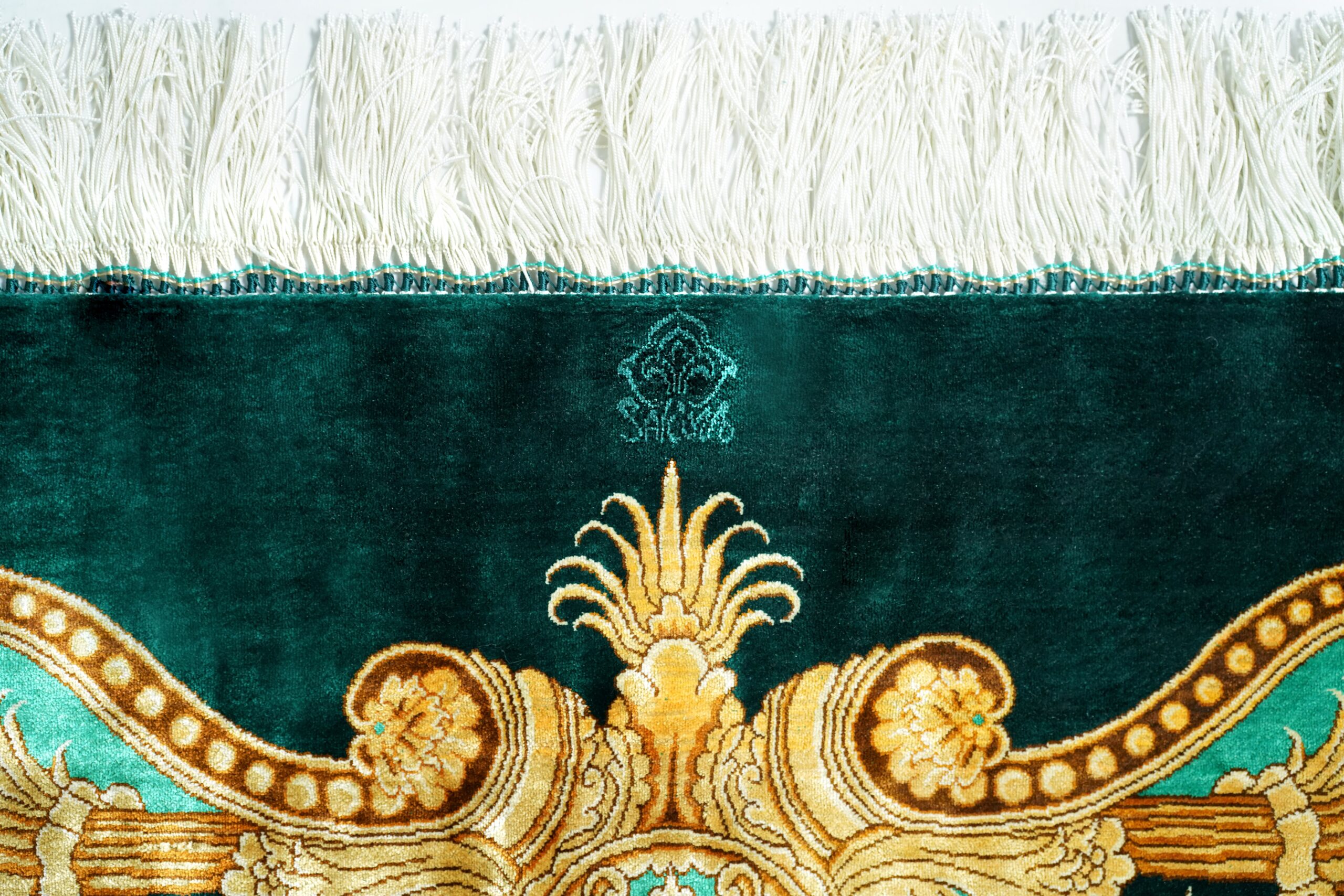 Hand-Knotted Khosrow’s Emerald Throne Persian Silk Rug (6’7” × 9’10”)